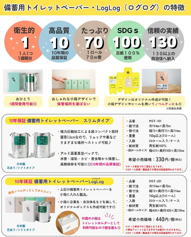 「10年保証備蓄用トイレットペーパー・LogLog」のご紹介。