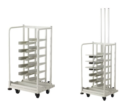部材台車はパイプ 11本・ベース 11枚が収納できます。