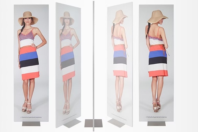 高品質でスタイリッシュな両面対応のフロアディスプレイです。
