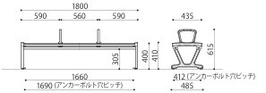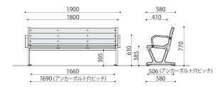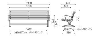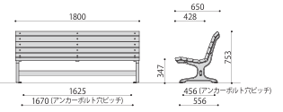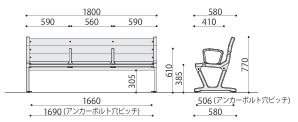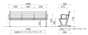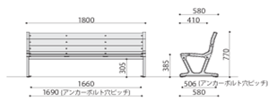 仕様/背・座 表面被:ASA樹脂 内部:ABS樹脂 (再生100%) 脚:鉄鋳物 粉体塗装 重量:68kg 脚にアンカーボルト用の穴が設けてあります。(φ12mm) |