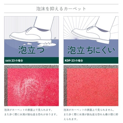 雨風などで濡れた際に生じる泡沫の発生を抑え、従来よりも軽量で耐候性に優れたパンチカーペットです。