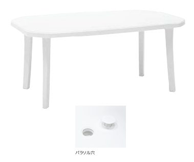 W1650×D1000×H725mm 主材 ポリプロピレン 重量 12.5kg 組立式 パラソル穴 φ40mm |