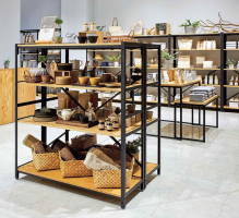 | Rエンド棚タイプ | 木の温もりのある陳列棚 | フレーム開くだけで組立完了! |