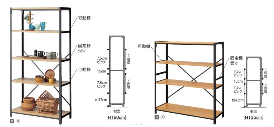 | 種別 | 1⃣ H1350 4段 | 2⃣ H1800 5段 | ||
