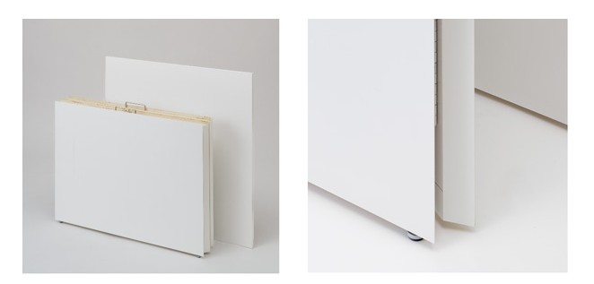 シンプルでプレーンなホワイトBOXでありながら、折りたたんで収納を可能とした展示台です。