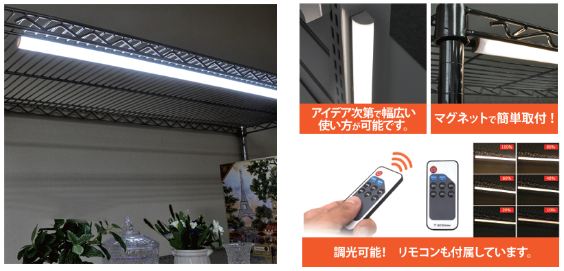 スチール製棚以外の 様々な棚に取り付けることができます。