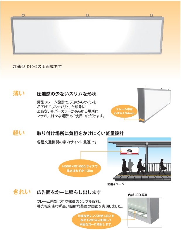 公共交通機関などに最適なLED薄型吊下げモデルです。