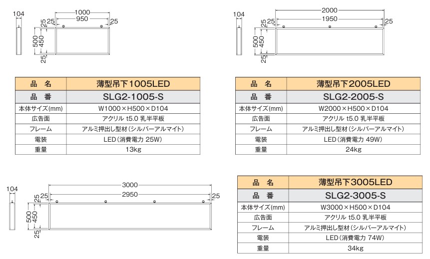 | 薄型吊下 2005LED | SLG2-2005-S | 2000×500×104 | LED38球 | ¥585,000 |