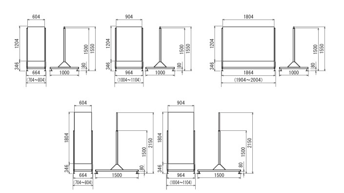 | フレーム:アルミ押出材 アルマイト仕上面 板:3mmアルミ複合板 2枚 ベース:スチール塗装仕上 アジャスター付き 特注サイズ製作可能:最大サイズ:面板寸法 w900×h1800又はw1800×h1200最小サイズ:面板寸法 w300×h1150 |