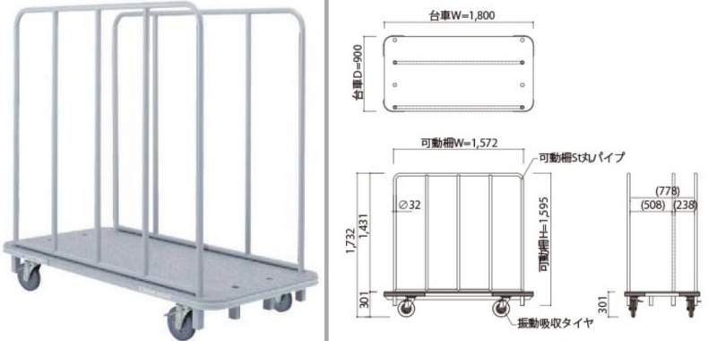 | キャスター | ストッパー付き振動吸収キャスター |